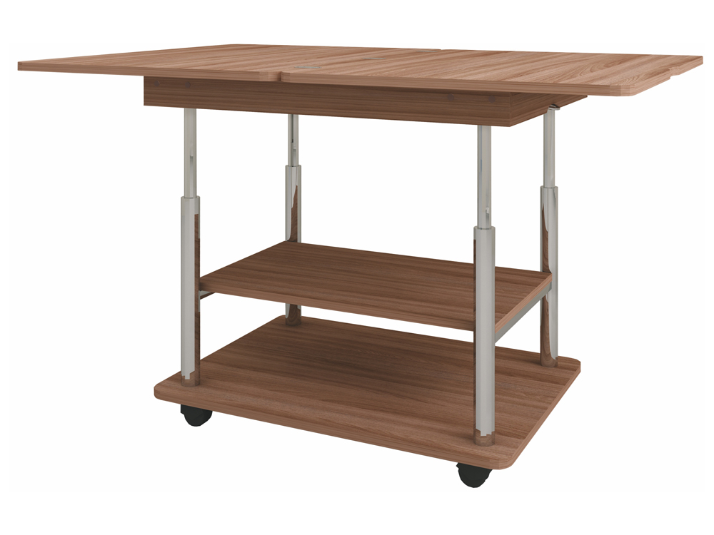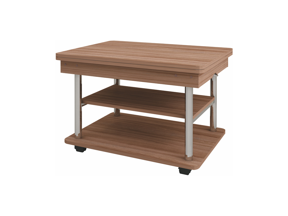 «Агат 22.1» – это особенная модель, которая сочетает в себе функции журнального и обеденного стола. Поршневой механизм подъема «труба в трубе» позволяет увеличить высоту стола на 40 см, а поворотный механизм увеличивает столешницу вдвое.