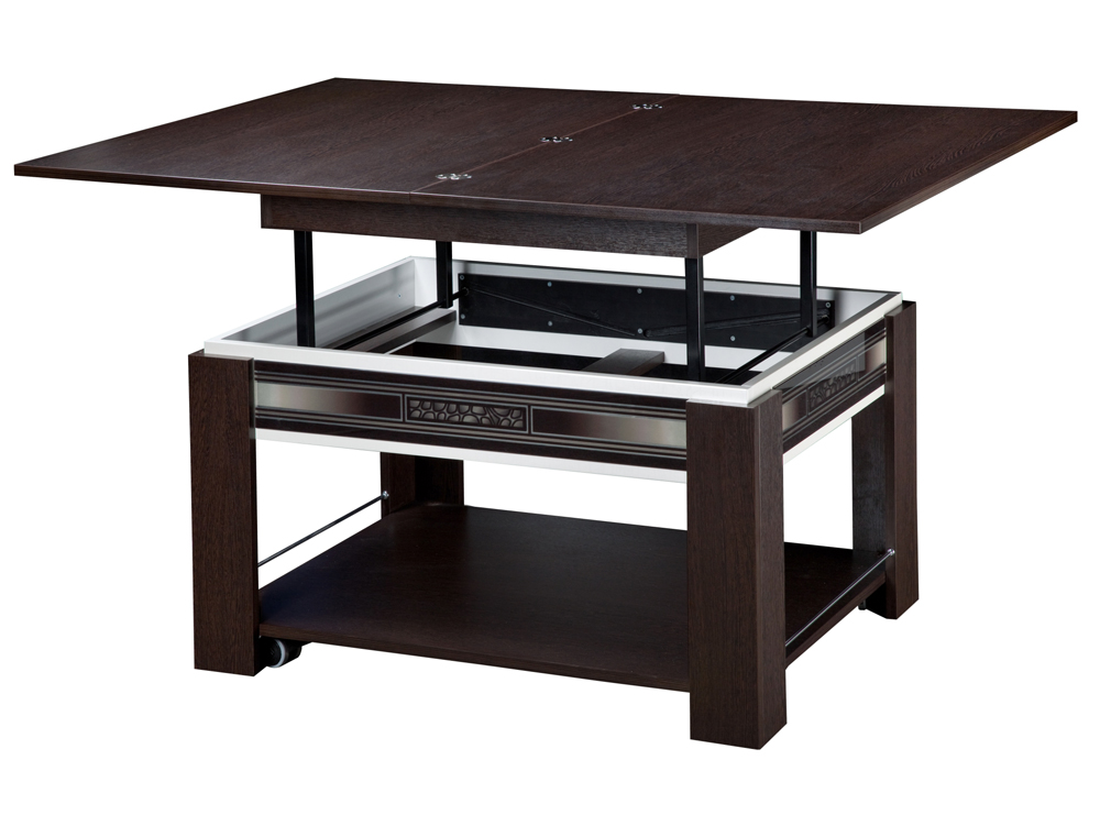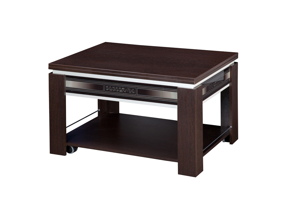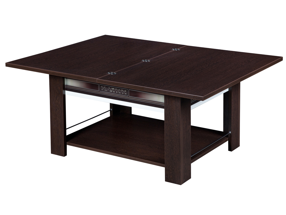 «Агат 24.10» – журнальный стол с механизмом трансформации, позволяющим превращать его в полноценный обеденный. Эффектный рисунок на стекле и контрастные цвета материалов модели, несомненно, украсят любой интерьер.