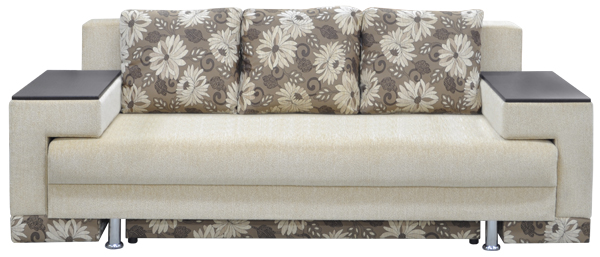Современный стильный дизайн. Возможность использовать как центральный объект интерьера. Для трансформации требуется небольшое расстояние между стеной и диваном. Ровное спальное место. Наличие бельевого ящика. В основании спинки и сиденья деревянная рамка, на которую кладется пружинный блок с настилом из термовойлока и эластичного листового пенополиуретана. Диван комплектуется приспинными подушками со съемными чехлами. П- образные подлокотники выполнены с декоративными накладками из МДФ. При раскладке дивана подлокотники необходимо откатить в сторону, для чего они оснащены роликами. Подлокотники также можно использовать в качестве передвижного столика. Механизм раскладки "Еврокнижка".