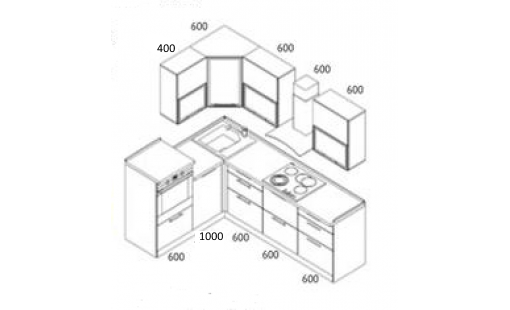 Размер кухни: 1600 х 2400 мм