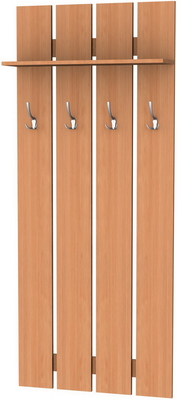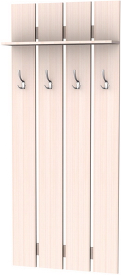 Более того – эта модель вешалки замечательно сочетается практически со всеми возможными вариантами мебельных комплектов, которые приобретаются для прихожих, ведь она может изготавливаться по Вашему желанию в одной из представленных вариаций расцветок. Пять замечательных цветов покрытий, имитирующих ценные породы древесины, украсят даже самую скромную прихожую. Это ясень, венге, дуб (в двух оттенках) и ольха. Незачем загромождать пространство шкафами, когда есть такая замечательная, стильная модель, которая выглядит солидно и дорого. Ее нет необходимости прятать, наоборот – она способна внести изюминку в интерьер. Хорошая фурнитура замечательно дополняет вешалку, сверху предусмотрена полочка для головных уборов.