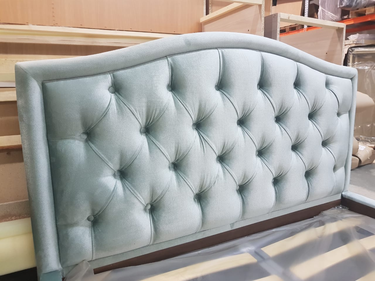 Особенности: Кровать установлена на пластиковые опоры h=25мм. Высота изголовья 1140 мм, изголовье каретная стяжка,