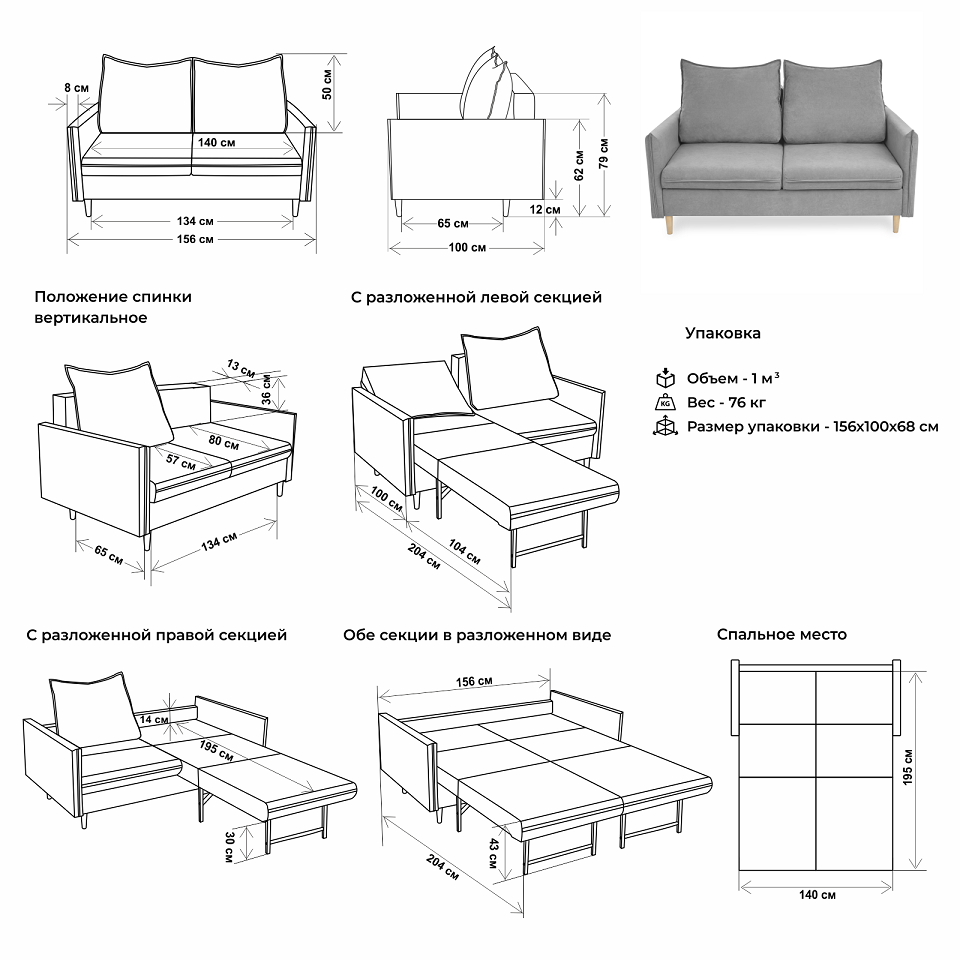 Диван Грифон Лайт 1560*940*800 СПМ 1950*1400*430 механизм ЮНИОР