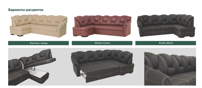 Дизайн дивана очень прост и прямолинеен и имеет элегантный классический стиль. Механизм трансформации - «Дельфин»