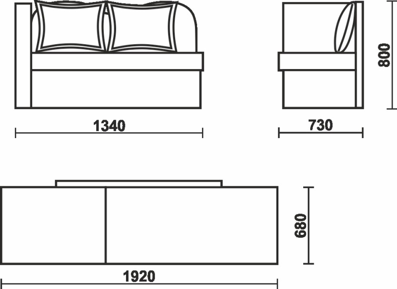 • При трансформации находится вплотную к стене, раскладка производится в боковом направлении, поэтому необходимо место слева и справа от дивана.