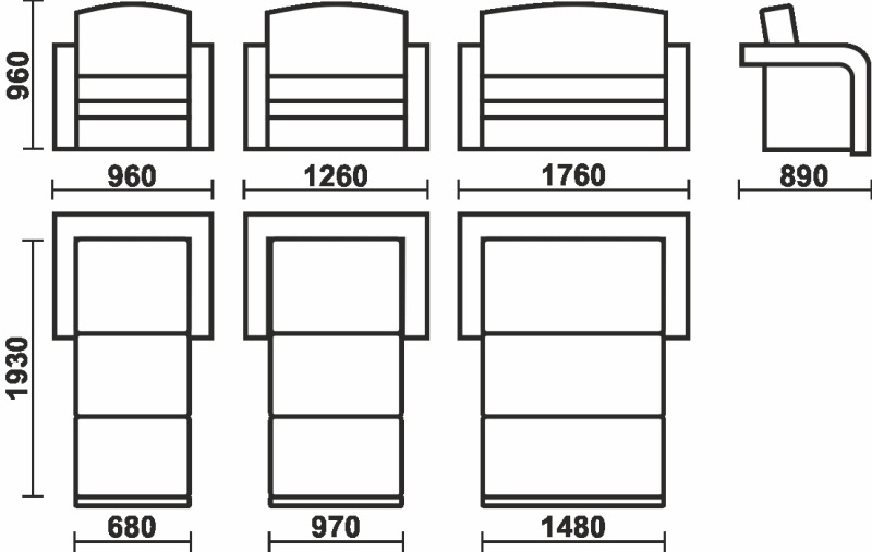Габаритные размеры: 1760*890*960