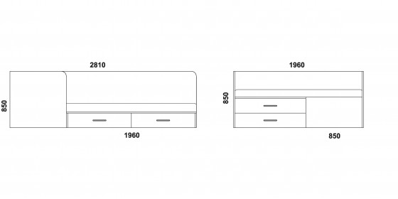В каждой кровати внизу есть выкатные шкафчики для дополнительного хранения вещей или игрушек.
