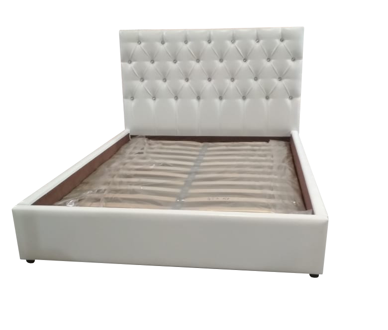 Особенности: Кровать установлена на пластиковые опоры h=25мм. Высота изголовья 1140 мм, изголовье каретная стяжка (пуговицы или стразы).