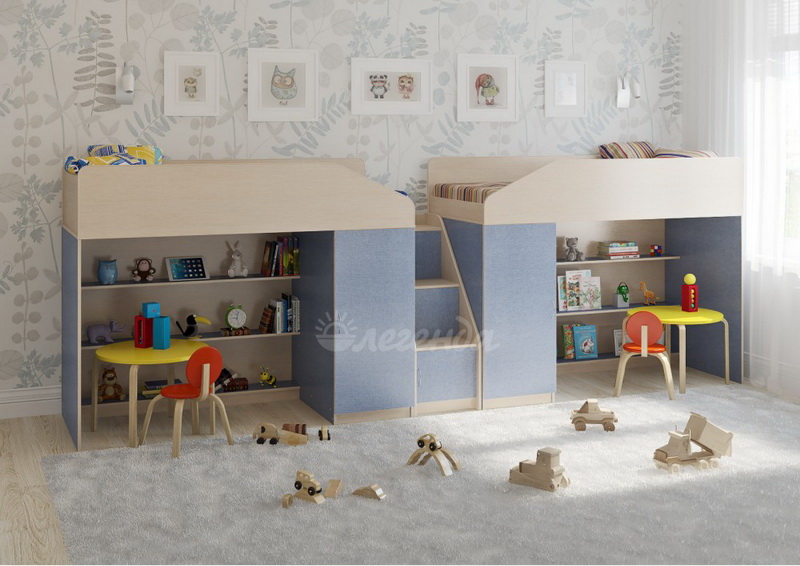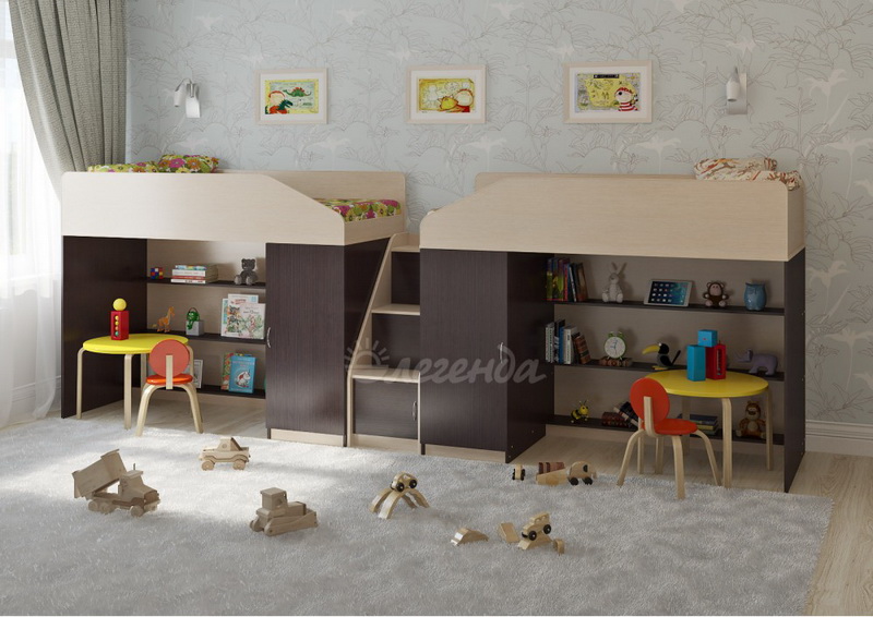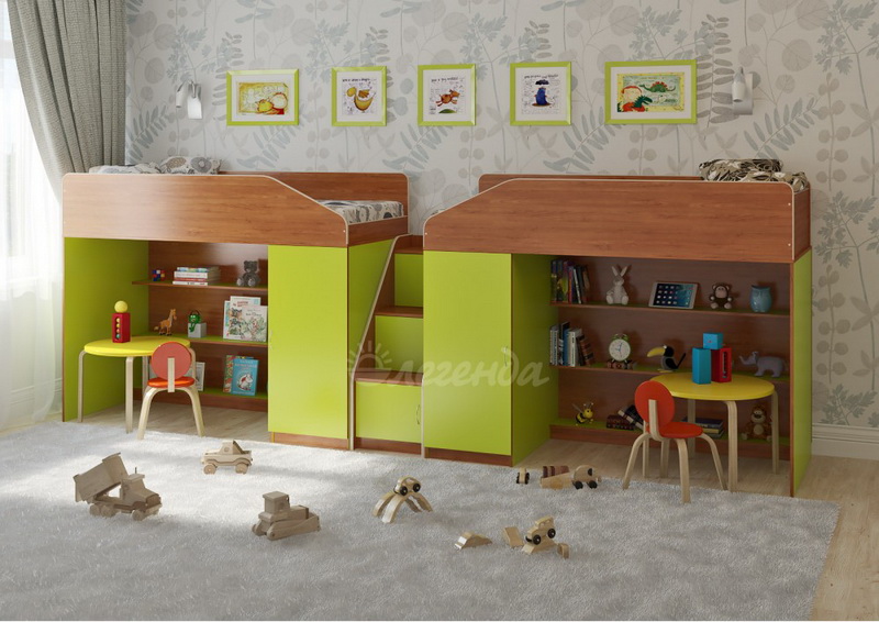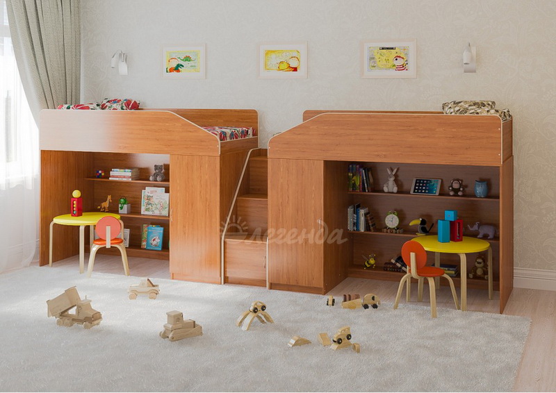 Две уютных кровати Легенда 11 с большим спальным местом размером 1800х800. Под спальными местами располагаются игровые зоны – свой уголок,словно домик для каждого ребенка.