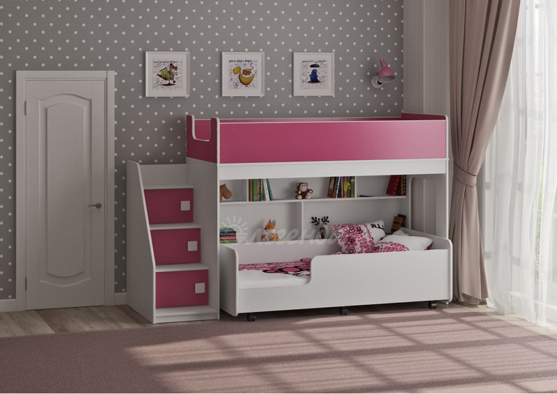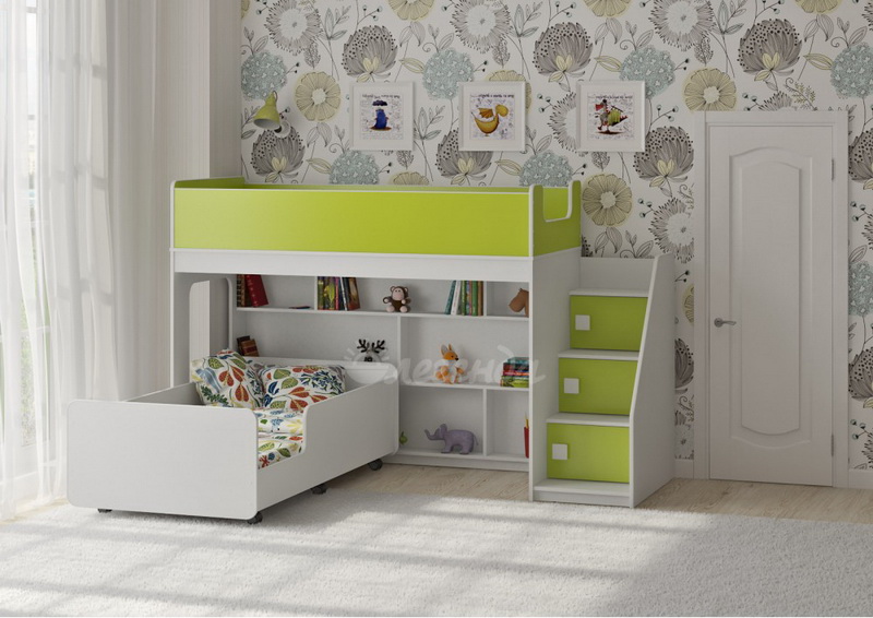 Высота кровати – всего 1405 мм. Удобно - взрослый может заправить кровать, не забираясь на второй ярус. Верхнее спальное место 175х750 мм, нижнее спальное место выкатное 1600х800 мм.