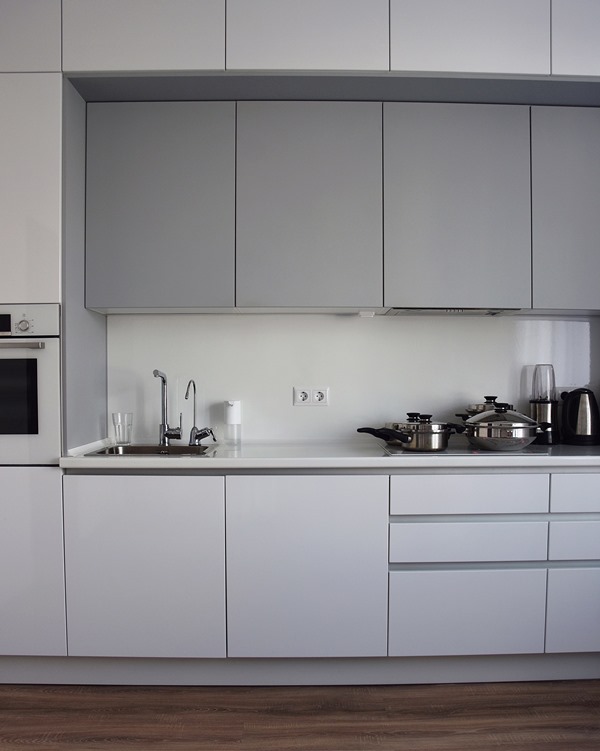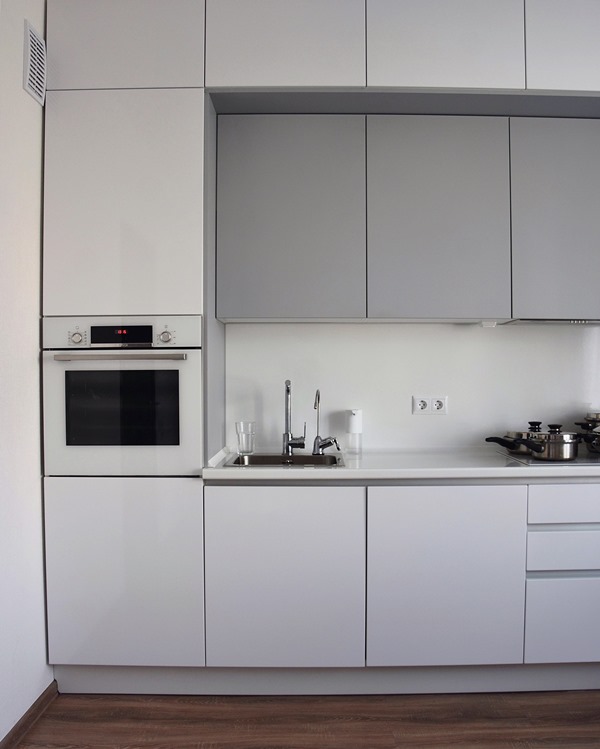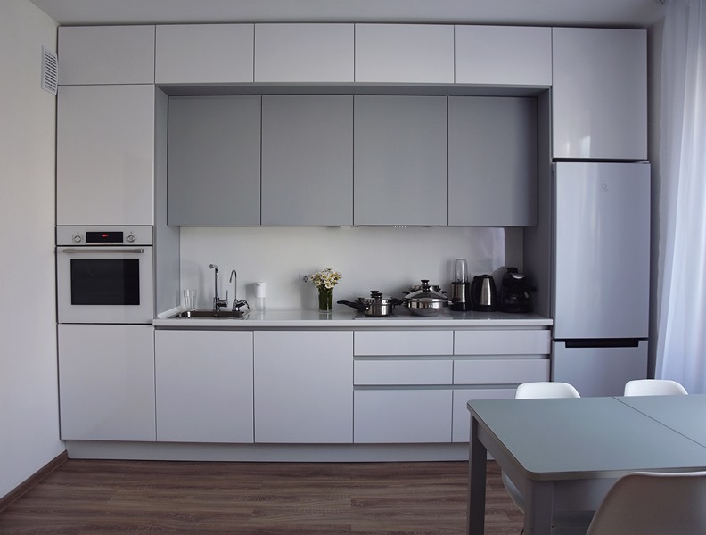 В стоимости: корпус, фасады, столешница, ручки (Shuko), доводчики.