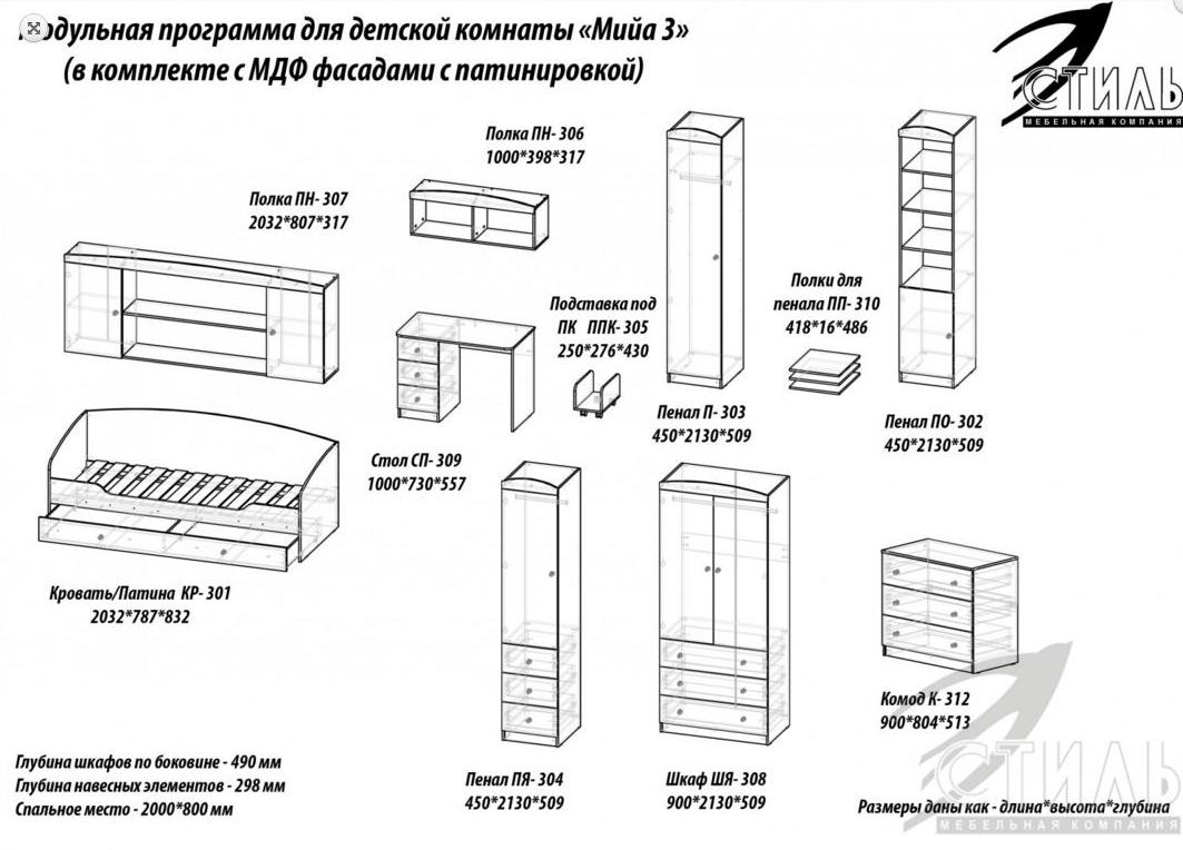 Мебель для детской Мийа 3 Фотопечать Композиция 1