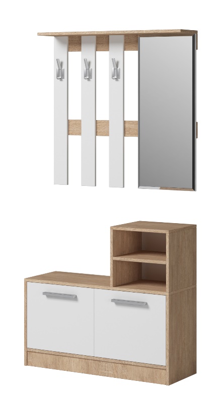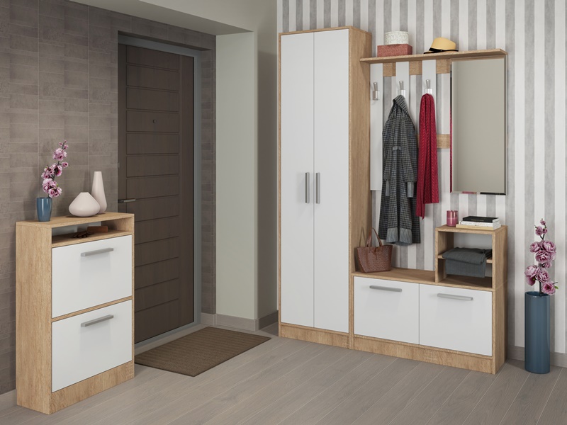 Прихожая (шкаф+вешалка+комод+обувница) Энтер Белый/Дуб Сонома