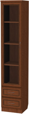 Однодверный высокий шкаф – прекрасное решение не только для дома, но и для офиса или учебного заведения. В шкафу имеется пять полок, расположенных на равном расстоянии друг от друга. На них можно прекрасно разместить книги, любые каталоги, папки, которые обычно тоже подписывают – благодаря прозрачному фасаду и возможности систематизировать расположение предметов вы легко найдете любой из них. На полках, которые находятся на одинаковом расстоянии друг от друга, можно расположить также учебники или какие-нибудь модели, макеты в кабинетах биологии, географии, истории: так, чтобы они всегда были видны и заинтересовывали, и в то же время для надежного хранения, и чтоб не было необходимости каждый раз их доставать и протирать от пыли. Благодаря универсальному лаконичному дизайну такой шкаф подходит для любой, даже официальной обстановки.