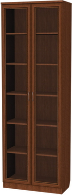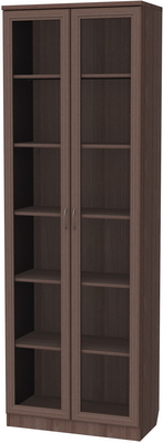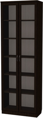 Книжный шкаф с двумя дверцами является в данном случае носителем хорошего сочетания красоты, стиля и практичности. Невероятно вместительный (высота более 2.2м), он обладает шестью довольно широкими полками. Этот шкаф – главный хранитель сокровищ вашей библиотеки. Вы можете подобрать один из нескольких оттенков, которые соответствуют оттенкам натурального дерева. Практически в любом интерьере хорошо будет смотреться однотонный окрас (дуб, ольха, молочный дуб), а двухцветный венге – поможет комнате заиграть новыми красками, особенно если она выполнена в однотонном решении.