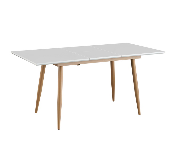 Ножки металлические, покрашены в цвет светлого дерева. Подходит для большой компании, дополнительно раскладывается на 40 см.