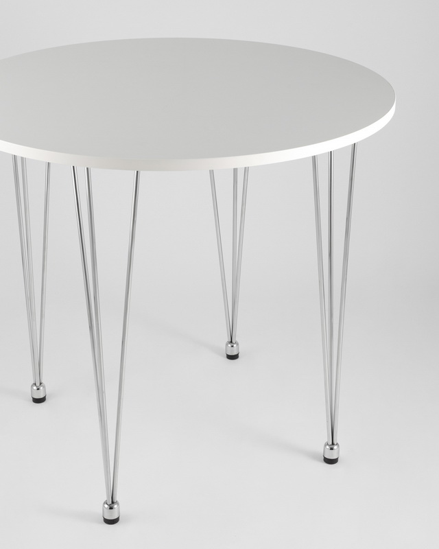 Стильный круглый стол с хромированнымие ножками оригинальной формы