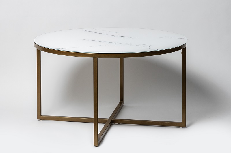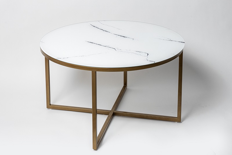 Столешница- закаленное стекло, ножки металлические, окрашенные в золотой цвет