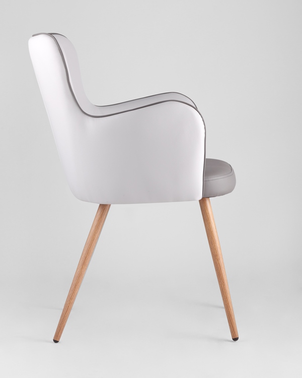 Стильный и мягкий стул Космея имеет широкую эргономичную спинку и удобные подлокотники. Обивкой послужила высококачественная PU кожа. Ножки стальные с принтом под дерево.