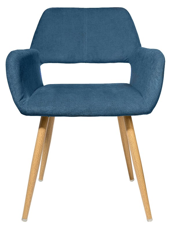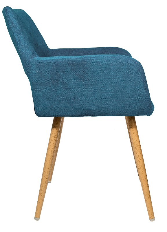 Стильный и мягкий стул имеет широкую эргономичную спинку и удобные подлокотники. Обивкой послужила высококачественная плотная ткань. Ножки стальные с принтом под дерево.