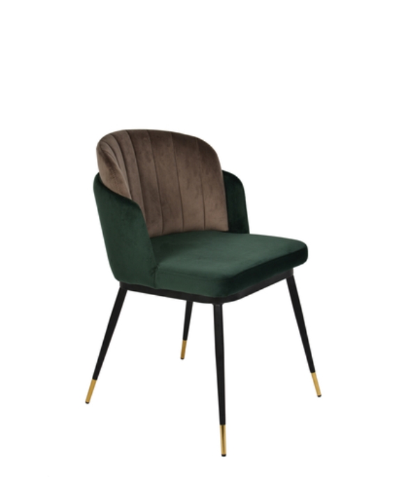 Мягкий двухцветный стул с обивкой из вельвета. Надежная опора достигается благодаря металлическому каркасу и удобным устойчивым ножкам, украшенным золотом. Спинка состоит из двух элементов, внутренняя часть с красивой вертикальной строчкой.