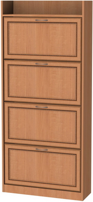 Эта модель может стать украшением даже небольшого по габаритам помещения, поскольку обладает оптимальными размерами и при этом – большой вместительностью. В этой тумбе может одновременно храниться до двадцати пар разнообразной обуви. Кроме того, в нее поместятся и различные аксессуары, такие как перчатки, зонты, обувная косметика и средства по уходу за обувью. Четыре раскладных ящика, разделенные на две секции каждый, позволят размещать комплекты обуви свободно. Ни пыль, ни грязь, ни домашние животные в этой тумбе Вашей обуви не страшны. Ну и, конечно, она идеально поддержит порядок в прихожей. Ведь обувь теперь не будет стоять на полу или на открытой полке, где ее могут обозревать все, кто посещает Ваш дом. Порядок и уют станут Вашими спутниками, и будут обеспечивать хорошее настроение.
