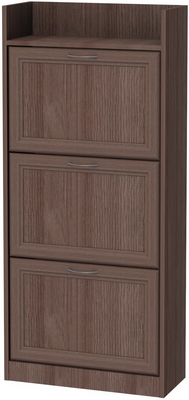 Мы представляем Вам одну из моделей тумб для обуви. Эта тумба имеет три отделения с откидывающимися дверцами. Внутри каждое из отделений разделено еще на два, при помощи дополнительной полочки. Особенностью этой модели является большая вместимость при условии максимальной экономии пространства. Ведь она использует полезную площадь не в ширину, а в высоту. Поэтому ее можно ставить даже в небольшой прихожей или в коридоре. Вверху тумба оснащена дополнительным отделением, предназначенным для хранения обувной косметики, каких-либо приспособлений для ухода за обувью и прочими мелкими аксессуарами. Но Вы можете ставить туда, например, сумочку, или то, что считаете необходимым.