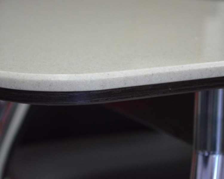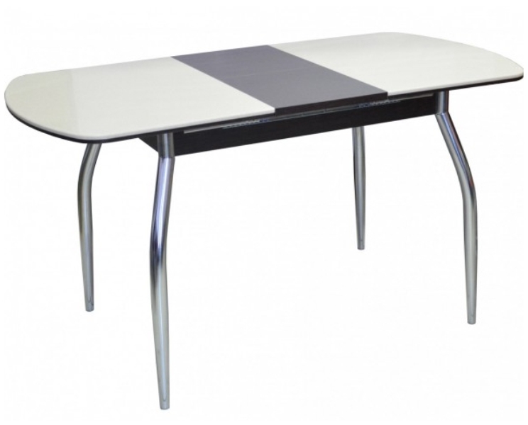 Раздвижной стол "Турин-2" (пр-во Россия). Комбинированная столешница: ЛДСП 10 мм и искусственный камень 12 мм. Центральная вставка - "бабочка" шириной 32 см позволяет легко разложить стол до размеров 80х152 см. Искусственный камень естественных расцветок является ударопрочным и практичным материалом. Полированная поверхность камня обладает мягким блеском. Торец ЛДСП облицован ПВХ-кромкой .