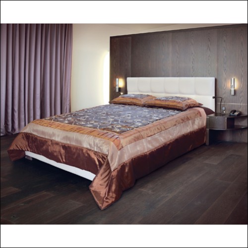 Каркас изделия, изготовленый из брусьев древесины сосны и древесно-стужечной плиты, оклеивается поролоном толщиной 10 мм, средней плотности, соответствующей международному стандарту. Кровать имеет две угловые опоры (деревянные либо металлические) изображены на фотографиях. Кровать выполняется в 3-х размерах, соответствующих размерам спального места 1400*2000 мм, 1600*2000 мм и 1800*2000 мм, а также может быть изготовлена с учетом ваших пожеланий по индивидуальным размерам.