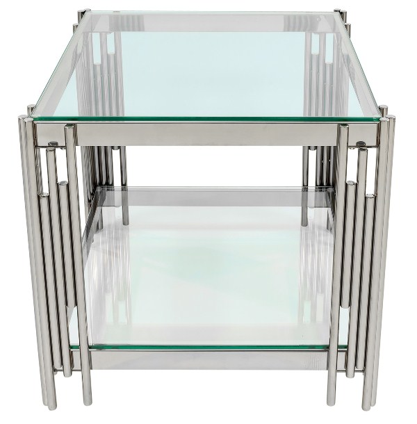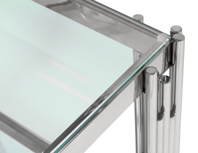 Журнальный столик ГЭТСБИ, прозрачное стекло, сталь серебро.